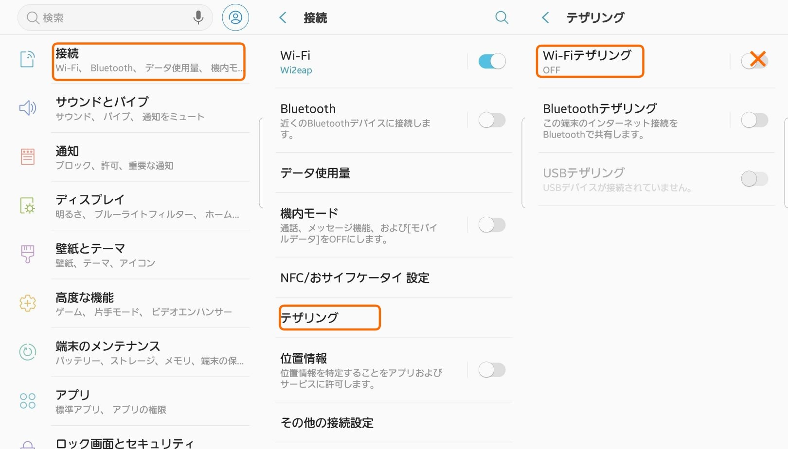Samsung Galaxy S7 edge SC-02HでWi-Fi共有をする