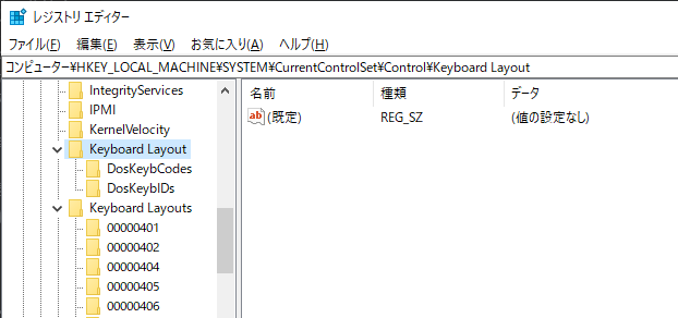 レジストリキーは「HKEY_LOCAL_MACHINE\SYSTEM\CurrentControlSet\Control\Keyboard Layout」実際にレジストリエディタで見てみると