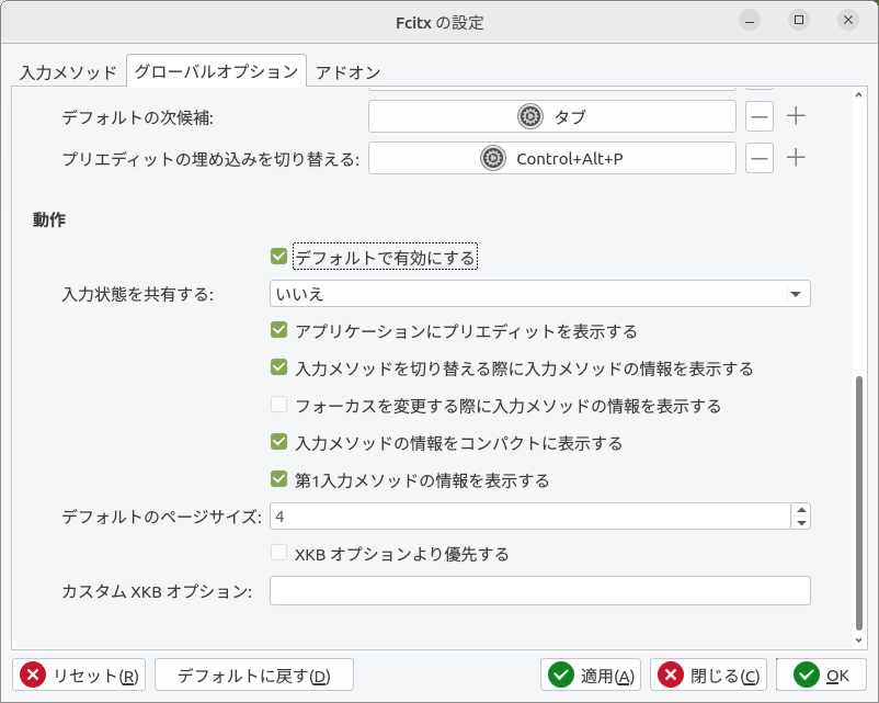 最初fcitx5を入れたもののうまく行かなくてfcitx4を入れた後の作業なのでパッケージは間違っているかも。