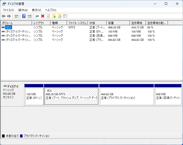 (参考)確保したパーティションにLinuxをインストールするとこうなります。