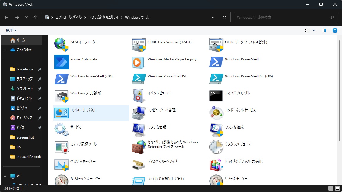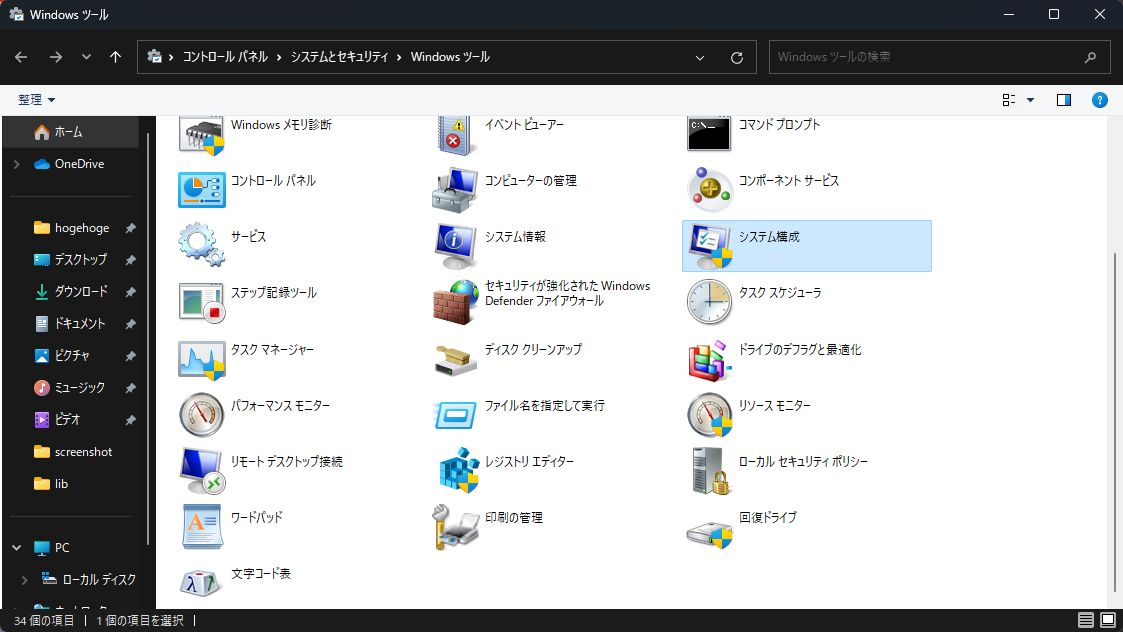 コントロールパネル→システムとセキュリティ→Windowsツール→システム構成を選択