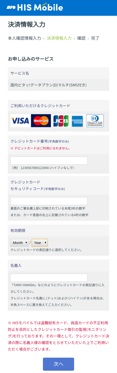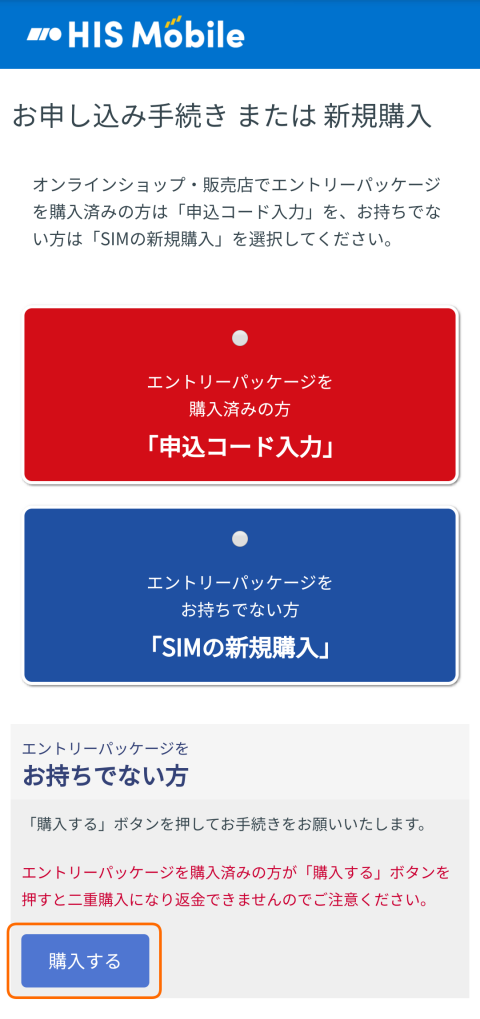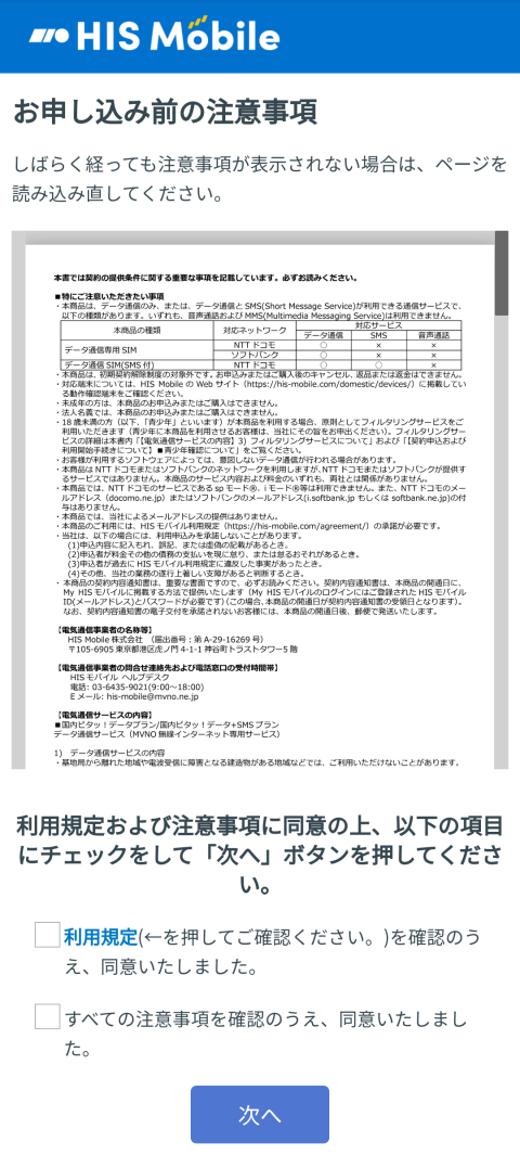 申し込みを進んでいくとHISモバイル IDの登録へ