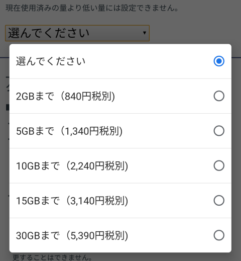 - 30GBの設定があり、30GBを超えた場合でも1GBあたり300円で高速データ通信を使える