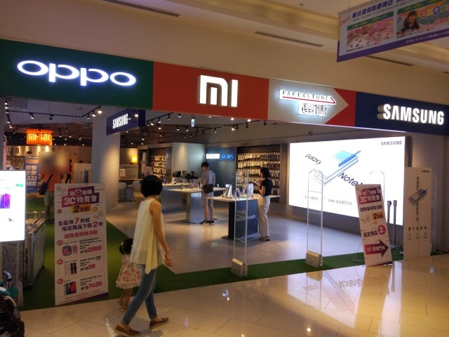 よく見ればわかりますが実は小米高雄大魯閣草衙道專賣店、oppo、遠傳電信、サムスンと併設のショップになっています。併設と言っても売り場は広いので快適に買い物が楽しめます。