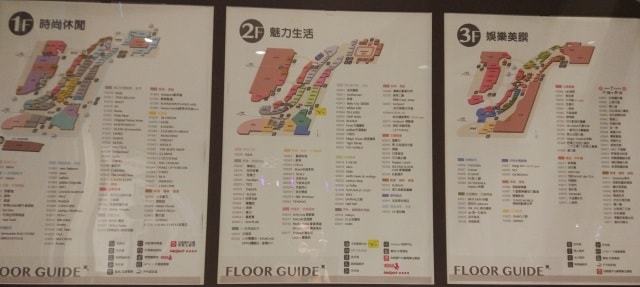 全店舗を一望できるディレクトリーリストはこんな感じです。ビルケンシュトックやABCマート、資生堂やランコム、ゴディバ等なんでもあるショッピングモールなので、高雄で時間が余ったり雨で外を出歩けないといった場合にはタロコパークをお勧めします。