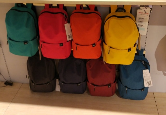 リュックサック。PANTONEのような色使いです。シンプルな方は安い(日本円500円くらい)ので、台湾についてここに寄ってこれを買って出かけに使うというのもありだと思います。下写真右端は日本円2500円くらいです。欲しい(今更)