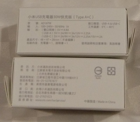 - 小米 USB 充電器 30W快充版(Type A+C) NTD275 安いので購入(2個)