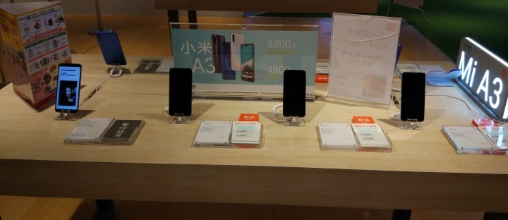 Mi A3。左端にMi A2があって、サイズ比較した結果今回購入しました。
