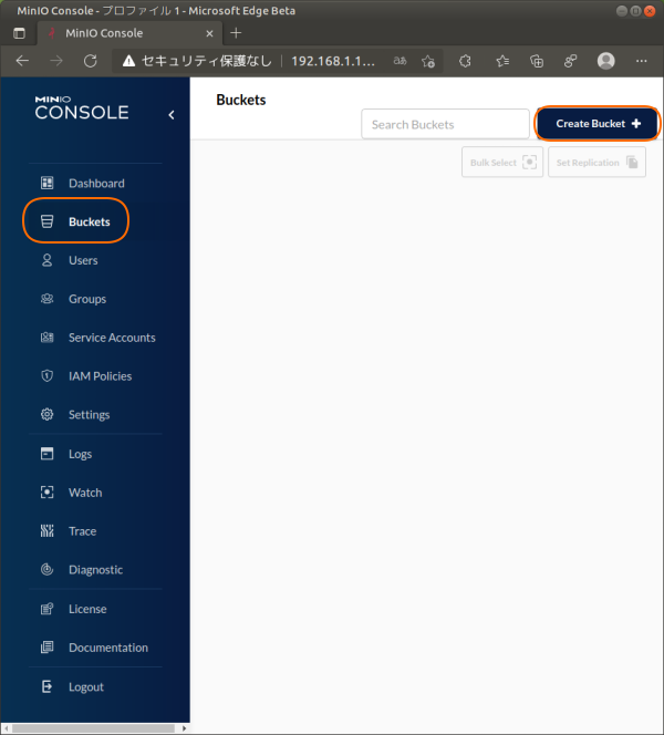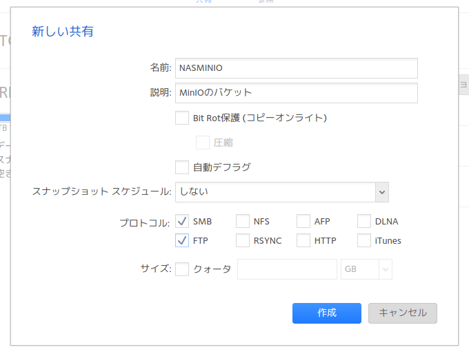 また、FTP等のNAS機能でバケットへアップロードしたファイルもMinIOバケットとして管理されるようなので、好きな方法でファイルを入れることができます。