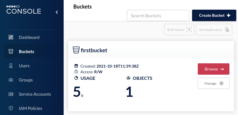 Bucket created successfully `nasminio/firstbucket`.