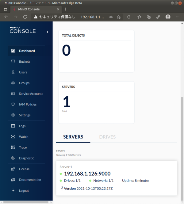 Oct 18 23:30:44 nas-zz-zz-zz minio[5404]: API: http://192.168.1.126:9199 http://127.0.0.1:9199