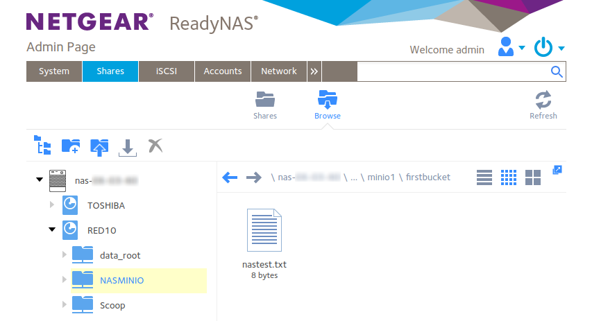 drwxrwxrwx+ 1 admin admin 0 Oct 18 23:07 /RED10/NASMINIO/minio1