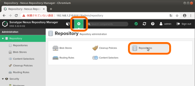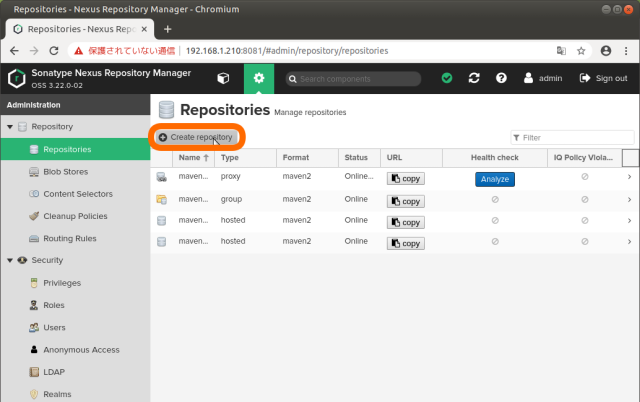 - Nexus上でのユーザー管理はせず、(Nexusの)adminユーザーで操作する
