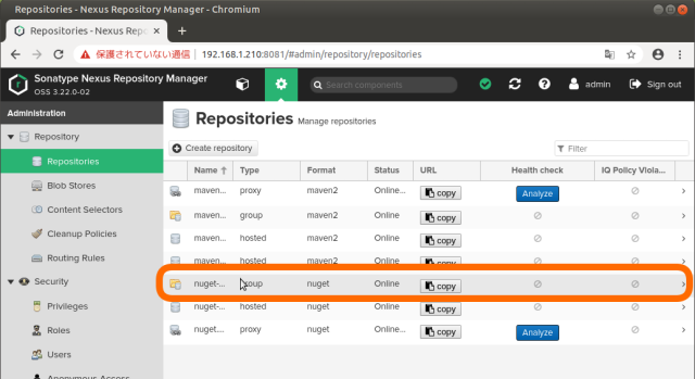 - Proxy、Group、Hosted(Nexusの用語)を構築する