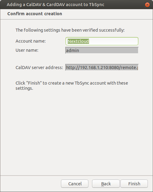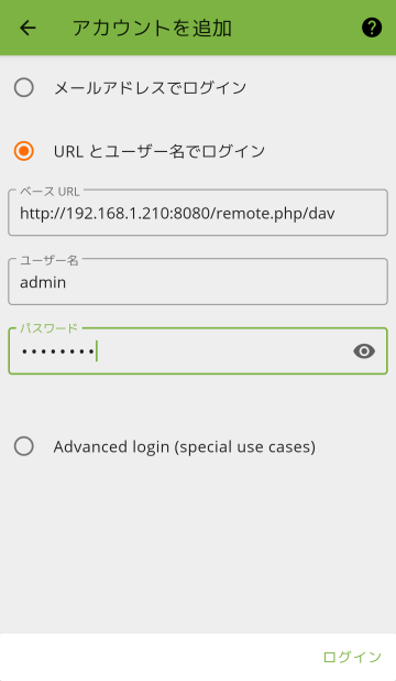- URL http://192.168.1.210:8080/remote.php/dav