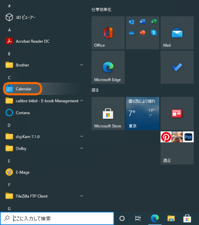スタートメニューからCの中にあるCalendarを起動します。