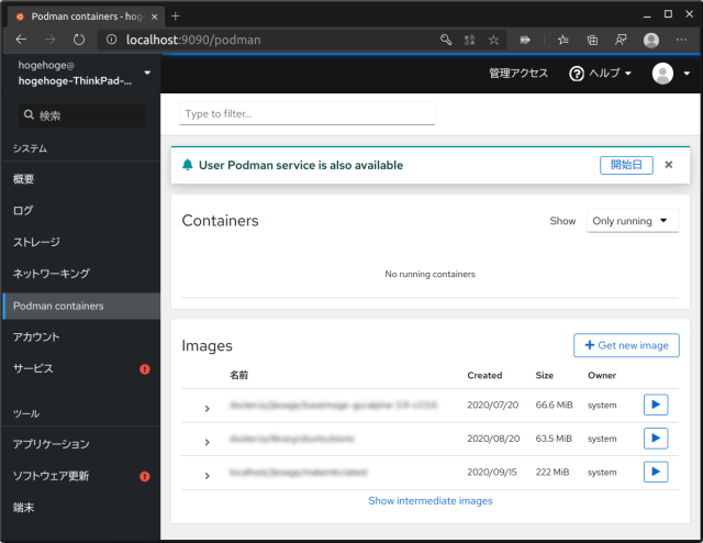 CockpitからPodmanの状態を確認する