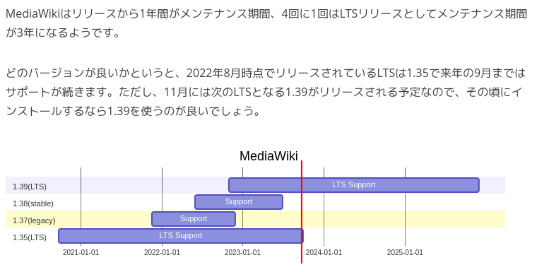 また、MediaWikiは現在も開発が活発に行われているのでバージョンアップは単純な入れ替えで済んだことが(私は)ありません。