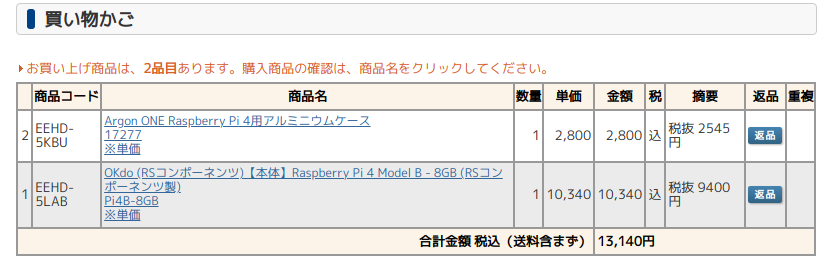 RPi4は日本でも扱っているショップが多く、割とどこでも入手は可能です。また、RPi用4のArgon Oneは初期モデルのみ千石電商でも購入することができます。