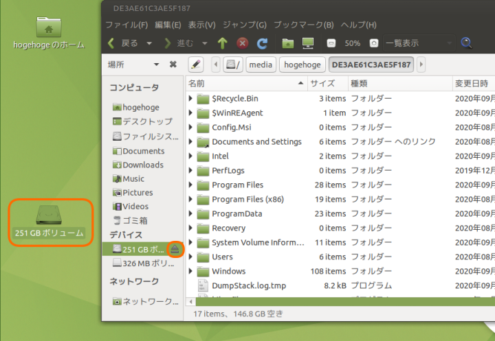 普段デュアルブートのLinuxを使う場面も多い私としては、LinuxからWindows10のパーティションに置かれているファイルを取り出したい時にWindows10で起動し直してファイルをFTPとかUSBメモリ経由でコピーしてといった作業はせず、必要に応じてLinuxからパーティションをマウントしています。